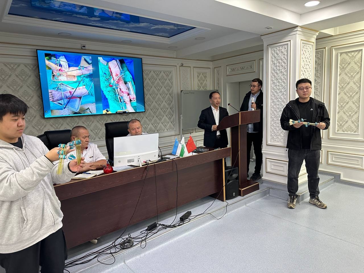 Делегацию из семи человек в лице руководителя делегации, заместителя директора Первой дочерней больницы Синьцзянского медицинского университета встретил директор Республиканского специализированного научно-практического медицинского центра травматологии и ортопедии Министерства здравоохранения Республики Узбекистан д.м.н., профессор Ирисметов М.Э. На встрече 30 октября 2025 года были обсуждены вопросы сотрудничества в области образования и внедрения новых технологий диагностики и лечения на основе исскуственного интеллекта в травматологии и ортопедии. возможности совместного участия на форумах, научных обществах, конференциях, проводимых в Республике Узбекистан и Китайской Народной Республике.